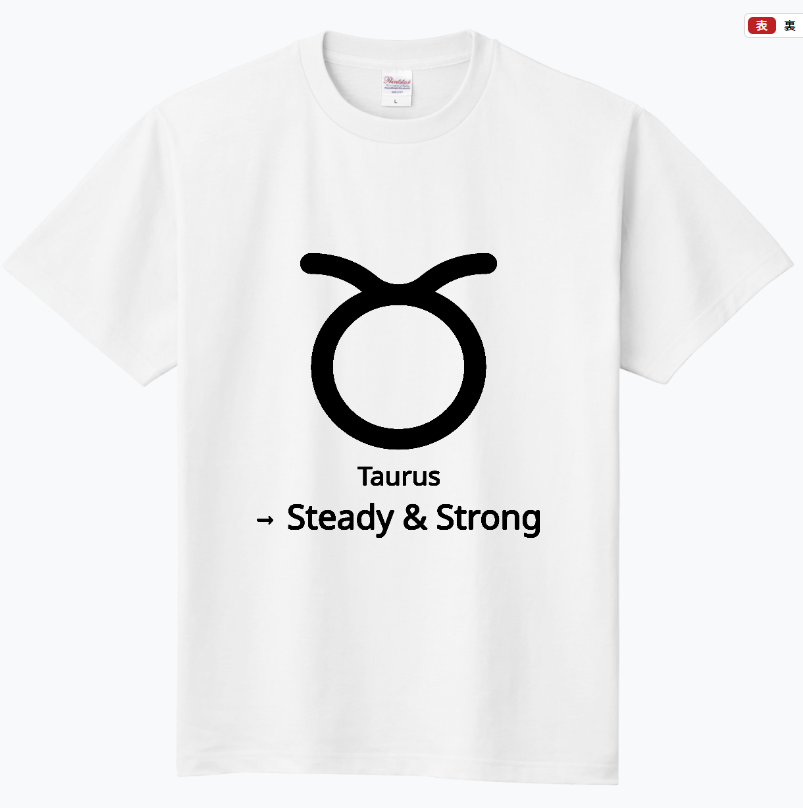 12星座の占星術記号と英語名 キャッチコピーも入ってシンプルでお洒落なtシャツです。画像は牡牛座。詳しくはショップをご覧ください。