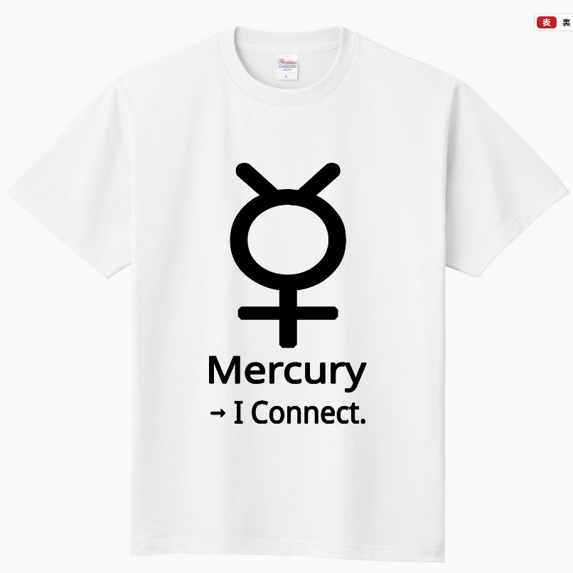 太陽系10天体の占星術記号と英語名 キャッチコピーも入ってシンプルでお洒落なtシャツです。画像は水星。詳しくはショップをご覧ください。